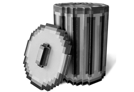 Paper-craft trash can that recreates the classic computer desktop trash icon as a physical 3D object, designed by Codeco using a single sheet of paper cut-out template.