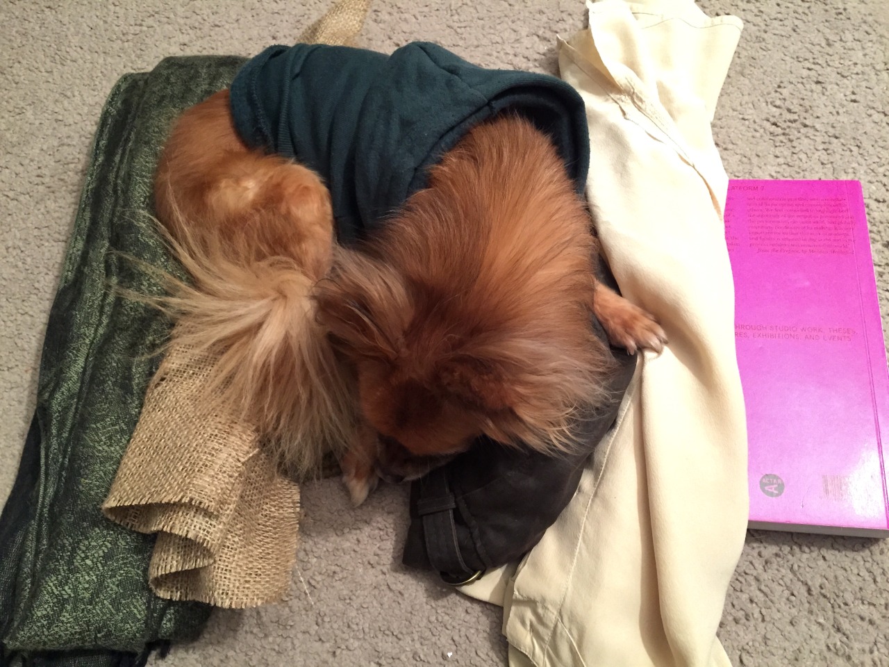 **Critical Update: Lenny has joined the still life. Notice how he is attracted to the natural textiles and pushes away the divergent material**