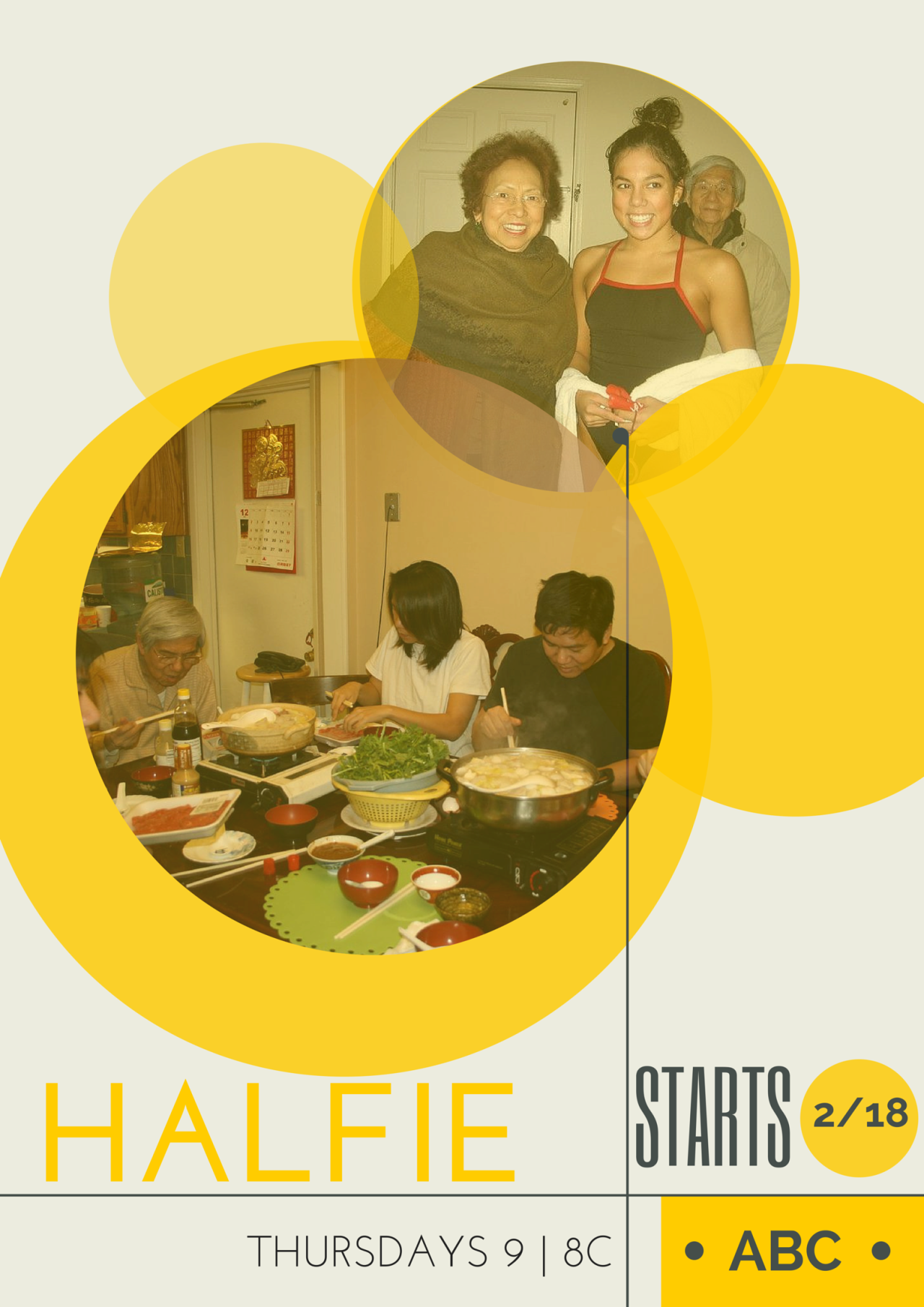 TV show concept 'Halfie' - a mixed-race situational comedy following three generations of the Kim family navigating cultural identity in Boston.