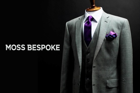 Moss Bros. bespoke suit collection, custom-made suits and shirts from a London tailor founded in the mid-19th century, fitted precisely to the individual wearer.
