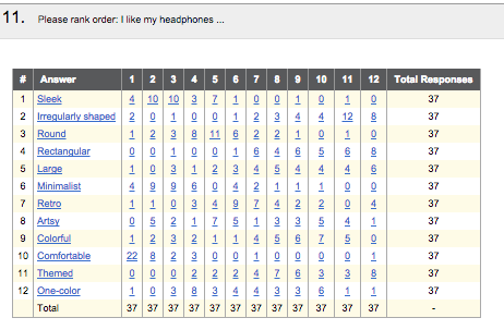 Our design inspiration came from the above-pictured headphones that people rated the highest (3.97/7), 2 standard deviations above any of the other headphones shown.