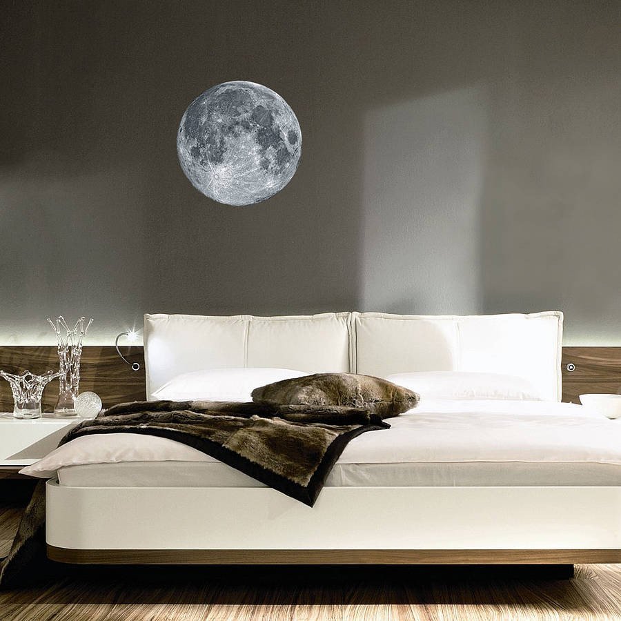 Large-scale photorealistic moon wall sticker designed for bedroom walls, creating the impression of sleeping outdoors under moonlight.
