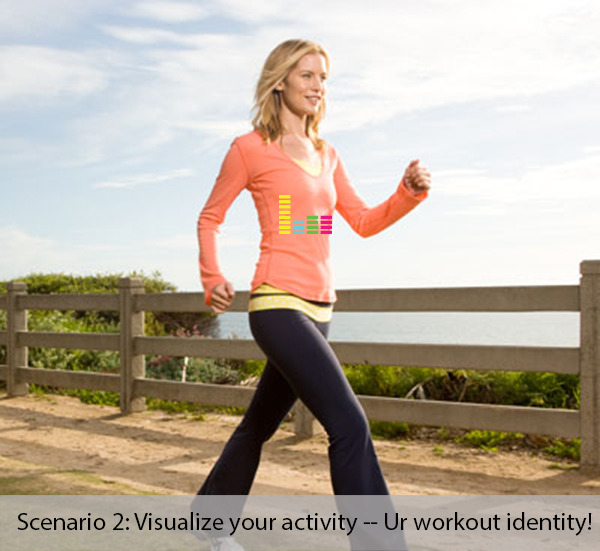 By grabbing data like activity frequency from Fitbit API and visualize your matching level in an artistic way – such as a music equalizer.