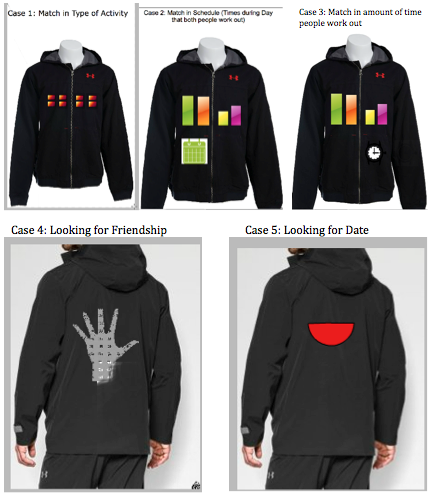 A Fitbit-connected wearable shirt concept that displays visual equalizer patterns to match runners with compatible workout partners based on activity data.