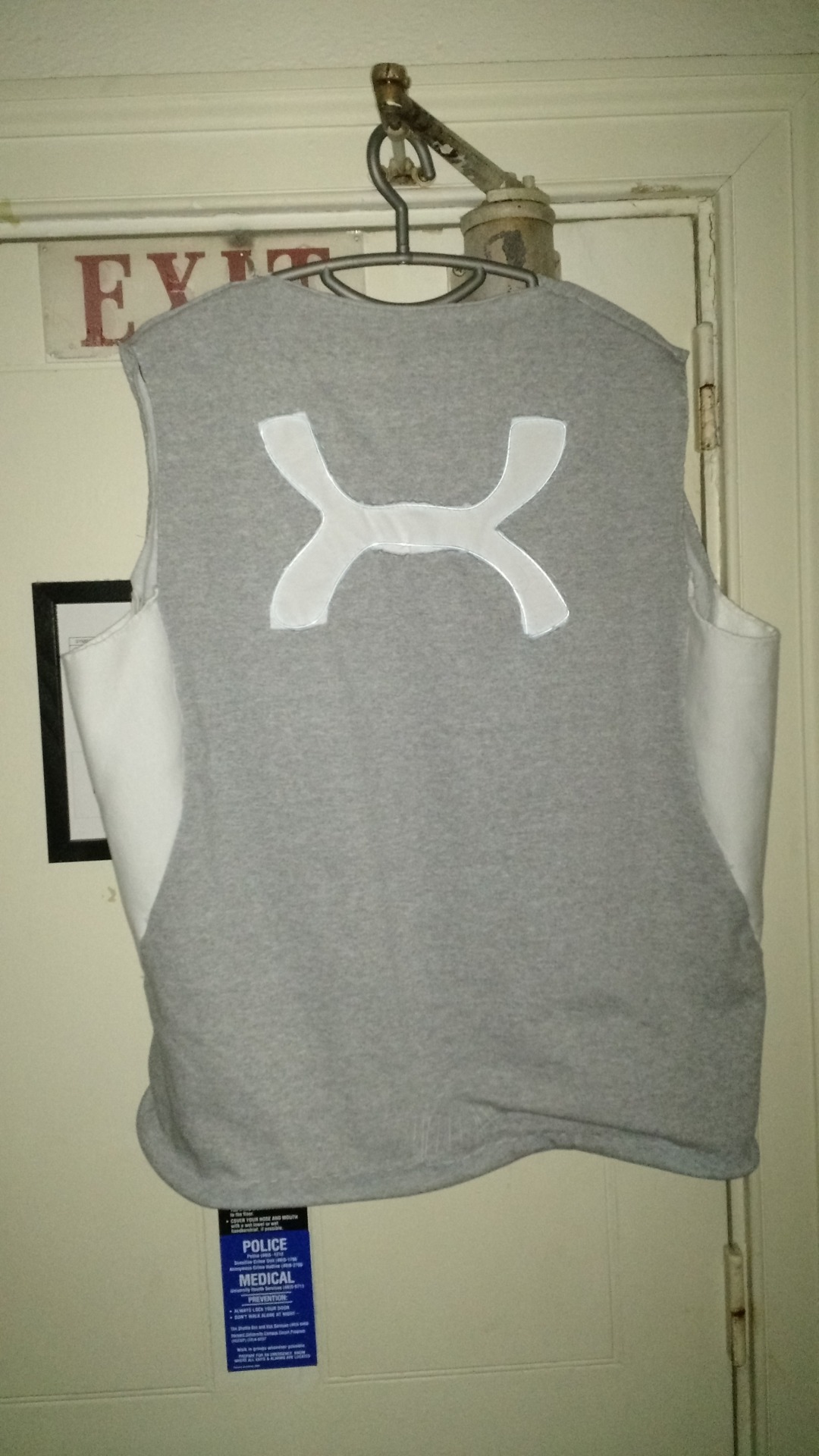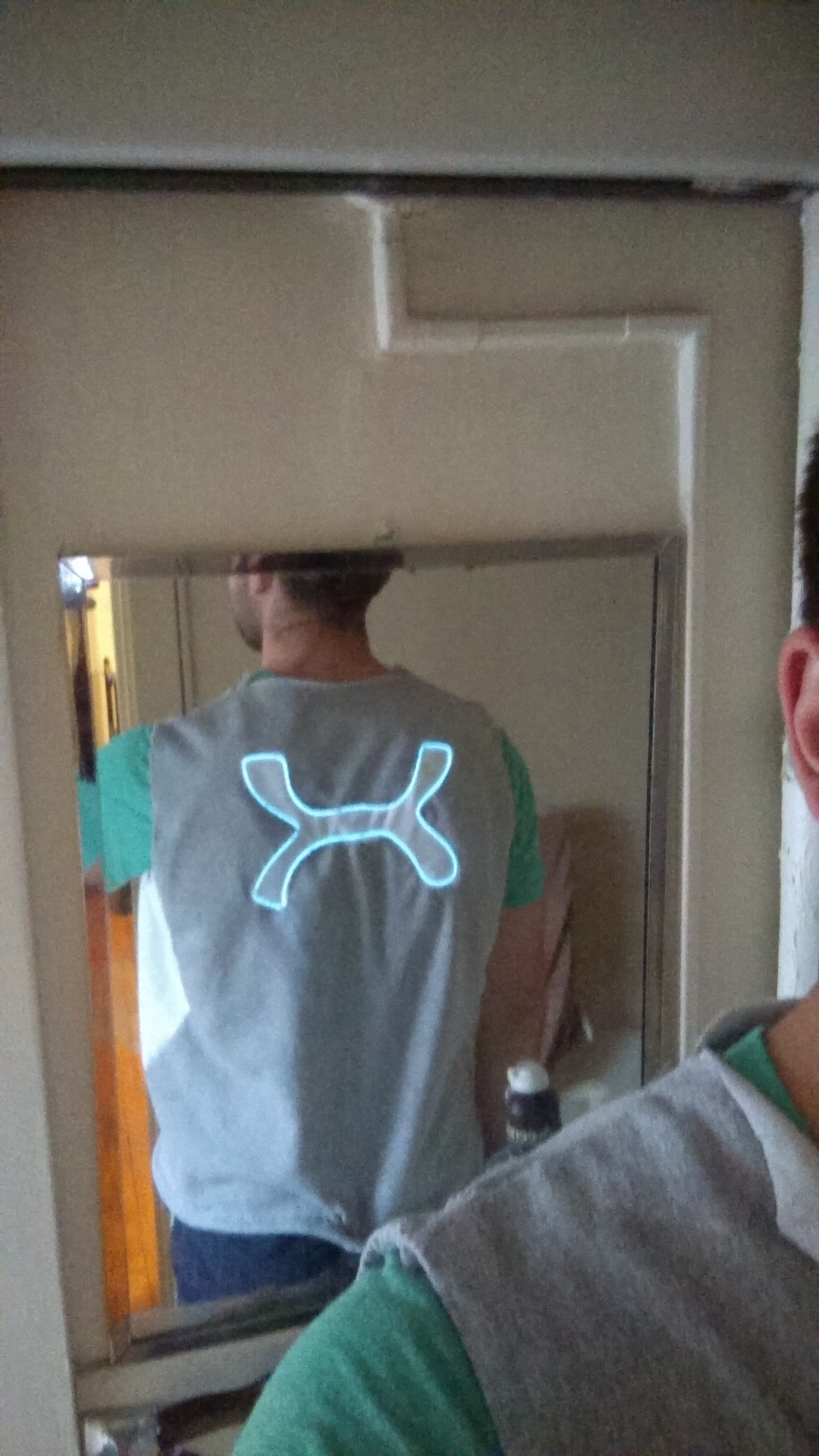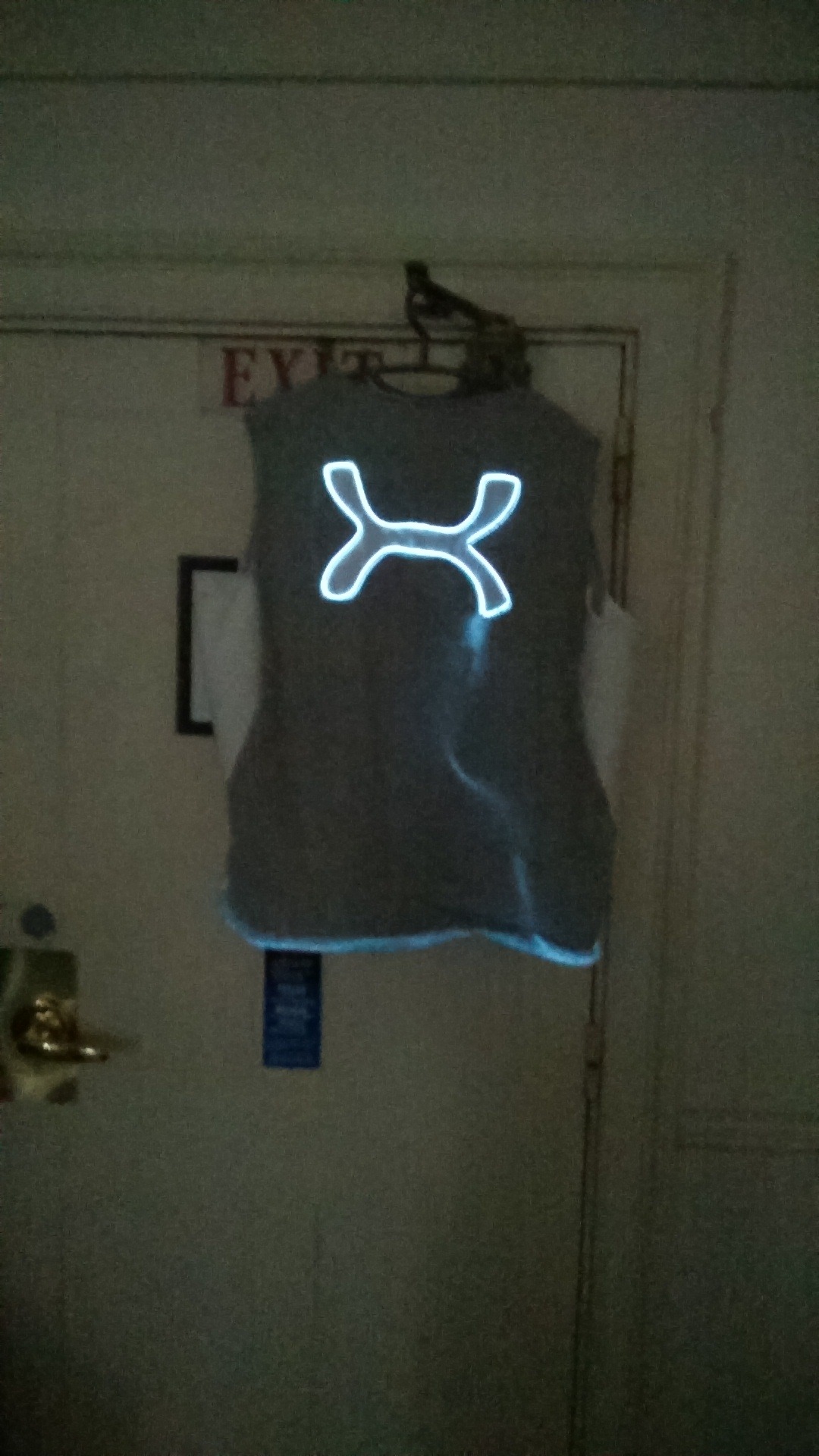 A handmade running vest with integrated LED light strips for visibility and safety during low-light running.
