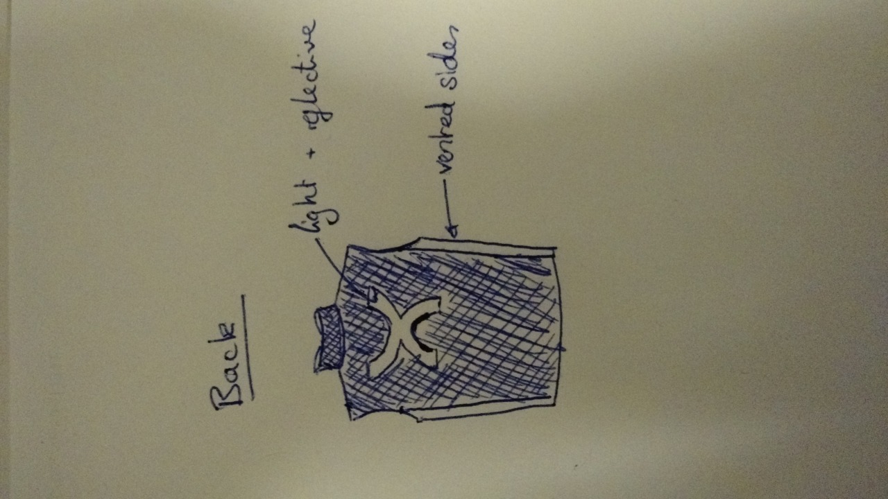 The battery pack is always an issue with running vests as they are bulky and bounce when someone is running. I attached the battery low on the hips at the back of the jersey and would (time allowing) attach gripped elastication to the bottom of the jersey which would hold the pack more in place as well as creating a slimmer, more streamlined battery pack which distributed the weight more evenly across the hem of the jersey.