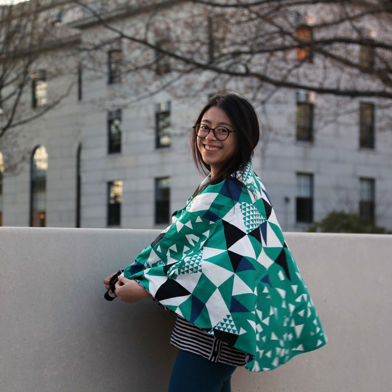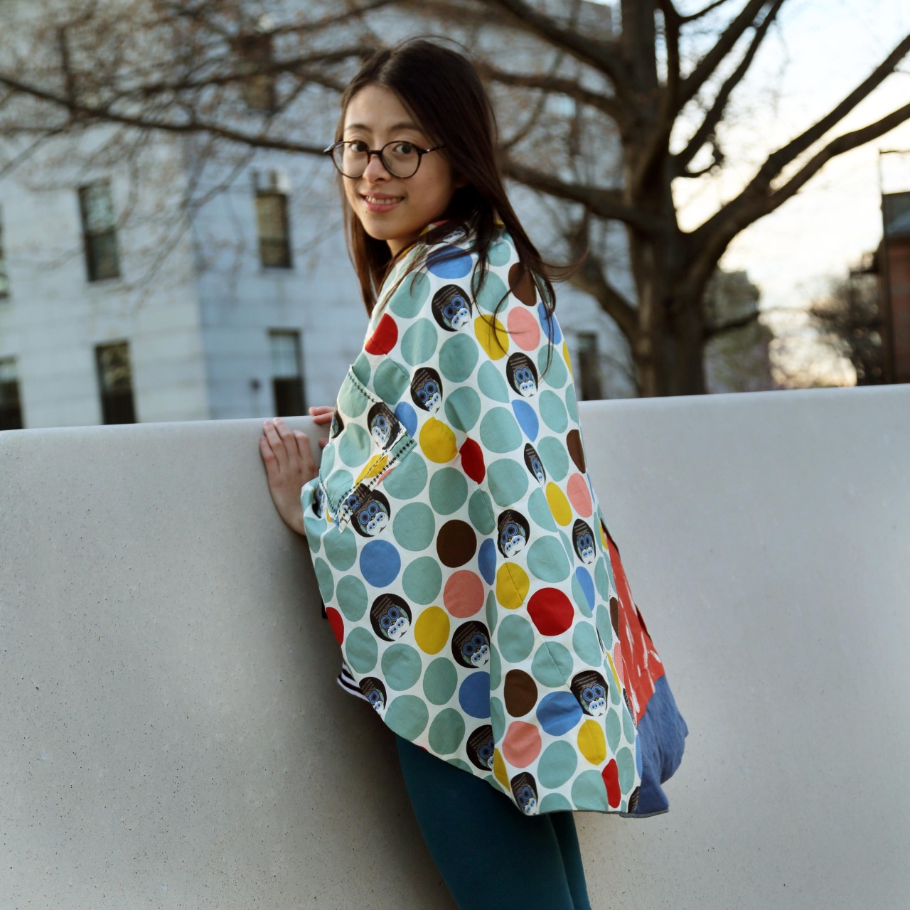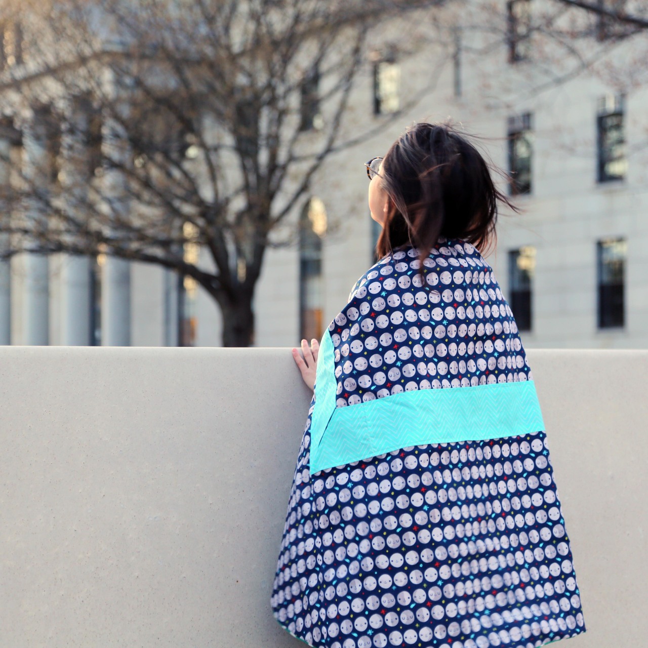 A multi-function poncho-skirt-blanket garment with customizable patterns, reversible design, snaps for size adjustment, and functional pockets — designed for both daily wear and travel.