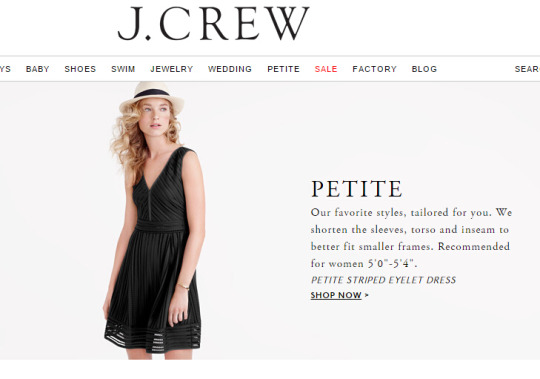 J.Crew's Petite clothing section, offering tailored styles with shortened sleeves, torso, and inseam for women 5'0"-5'4".