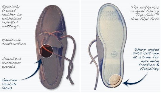 Sperry Top-Sider boat shoes, originally designed in 1935 for maritime deck conditions, now a preppy summer fashion staple.