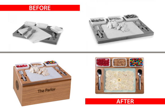 The Parlor is a groundbreaking improvement over the original design. No longer just a board, the product now has a chilled chamber beneath the marble mixing top in which the ice cream can actually be made. Instead of just a surface for mixing toppings, The Parlor now let’s you pour in the simple ingredients (milk, sugar, cream, etc.) and will make delicious homemade ice cream right inside the temperature controlled internal chamber. Now you can mix toppings into your own ice cream!