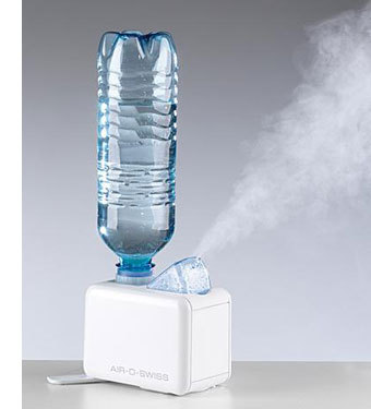 Air-O-Swiss portable water bottle humidifier, a compact bedside humidifier that uses a standard water bottle.