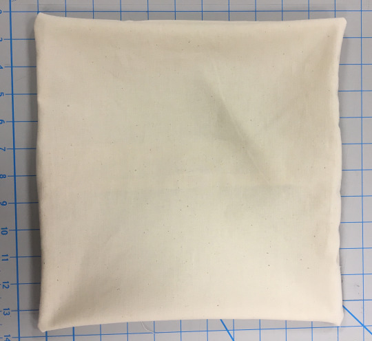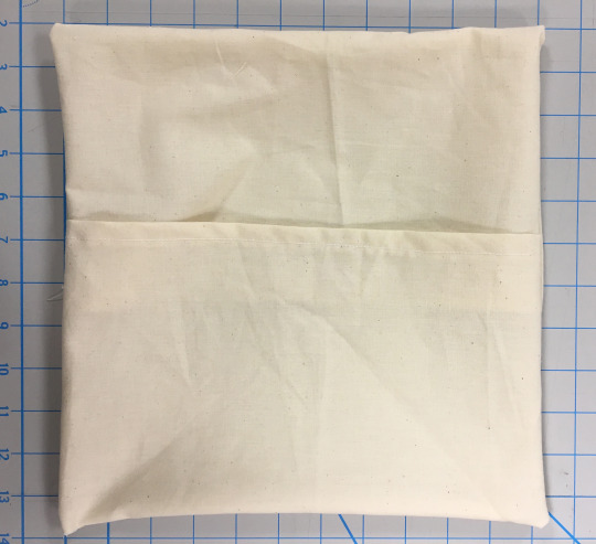 A handmade pillowcase made from simple cream-colored fabric, chosen for its clean look and future customization potential.