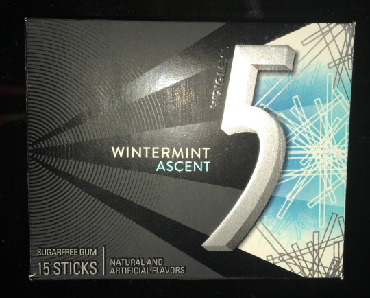 Wrigley's 5 Wintermint Ascent gum packet with multiple tactile surface finishes including embossed, glossy, and matte ridged textures.