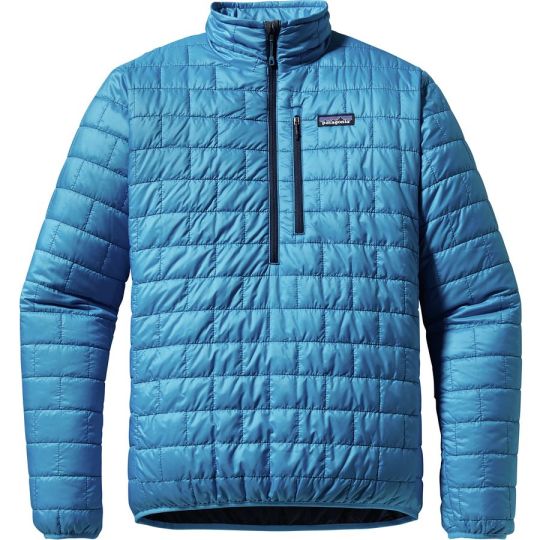 Patagonia Nano Puff insulated 1/4 zip pullover — a lightweight, compressible insulated jacket that packs into its own breast pocket, used for variable SF weather and outdoor activities.