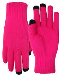 Touchscreen-compatible knit gloves with conductive fingertips that allow smartphone use in cold weather.