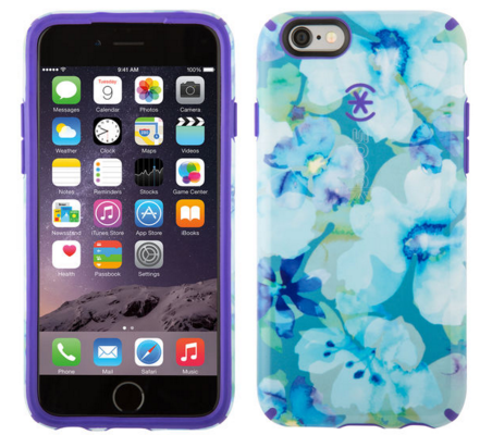 Speck iPhone case with a colorful floral watercolor design that provides strong protection without adding bulk.