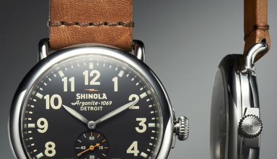 Shinola luxury watch from a Detroit-based brand committed to quality American-made products, blending rustic and hipster aesthetics.