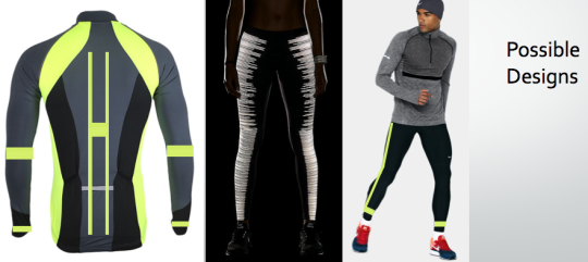 IllumiGear, a final project concept for EL-wire illuminated running and cycling jackets that glow independently of external light sources, improving nighttime athlete visibility to drivers.