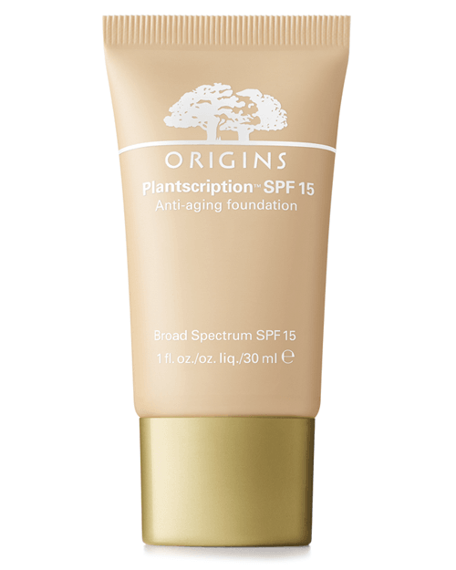 Origins Plantscription SPF 15 anti-aging foundation, a natural, lightweight foundation with sun protection and a subtle neutral scent.