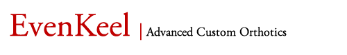 Custom orthotic shoe inserts made via EvenKeel computerized system, combining podiatric medicine with patented scanning technology.