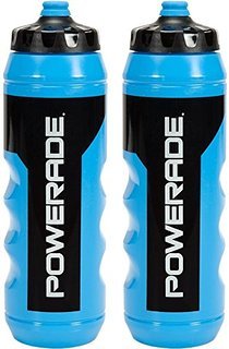 Gatorade/Powerade branded squeeze water bottles with spill-proof caps and pressure-release nozzles, iconic in sports culture.