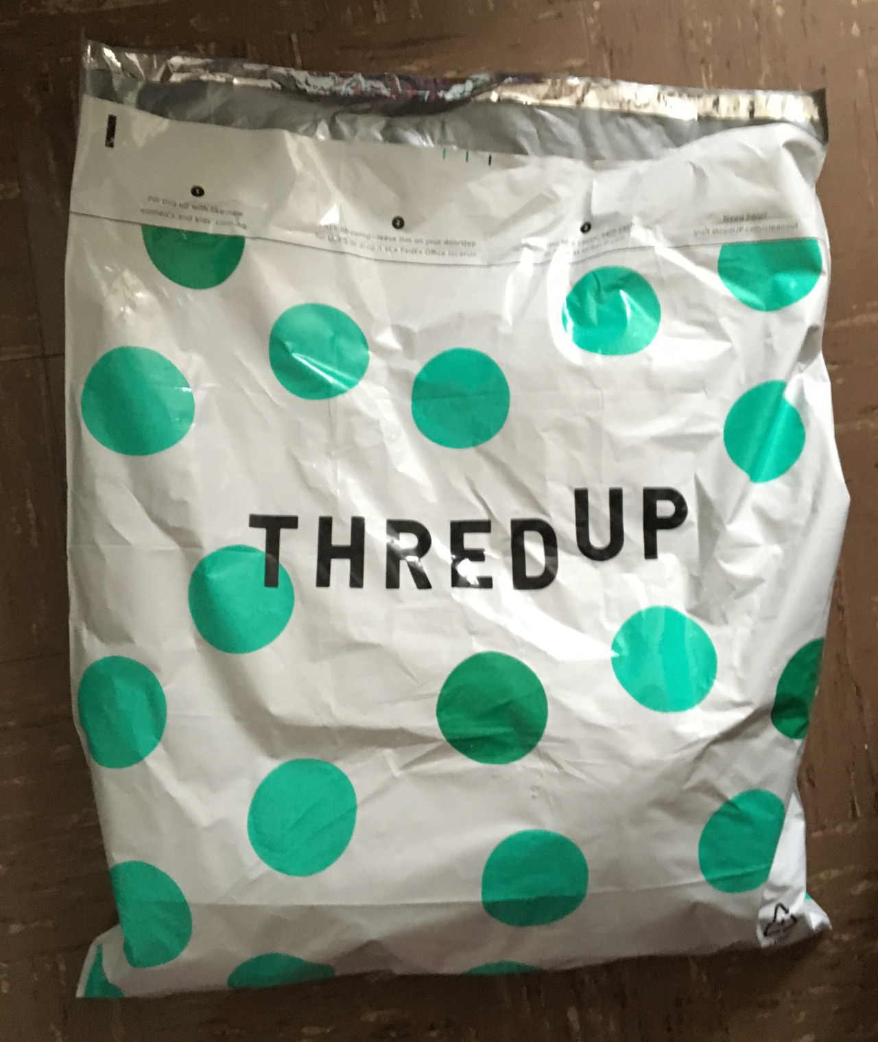 ThredUp, a clothing resale service that provides free prepaid shipping bags for sending in unwanted clothes for payment and resale or recycling.