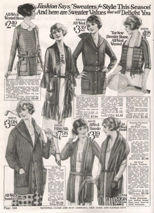 Sweaters entered the domain of women’s fashion in the 1920s, when Coco Chanel popularized the men’s sweaters by pushing up the sleeves and wearing belt as decoration. By the 1940s, the glamorous “sweater girls” image by Hollywood became synonymous with pin-up girls. In current day, machine-made sweaters are widely available to the public as one of the staple fashion items for winter.