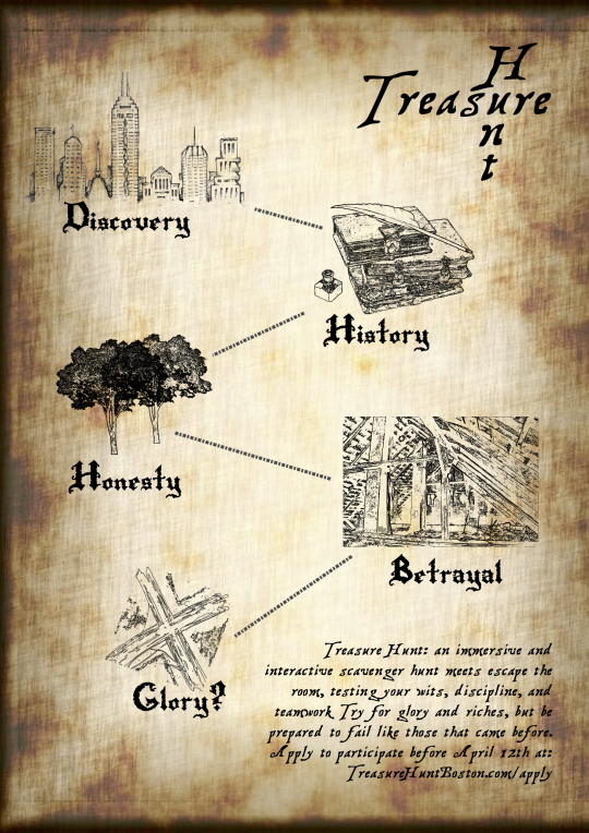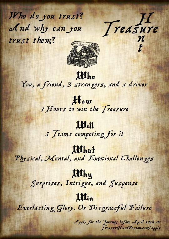 Treasure Hunt, an elaborate five-clue city-wide scavenger hunt with planted actors, cooperative puzzles, and a negotiation mechanic, designed to force diverse teams to work together under pressure.
