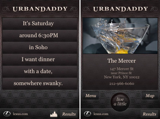 Urban Daddy's 'Next Move' app, a curated city recommendation service that suggests restaurants, bars, and entertainment based on context and companions.