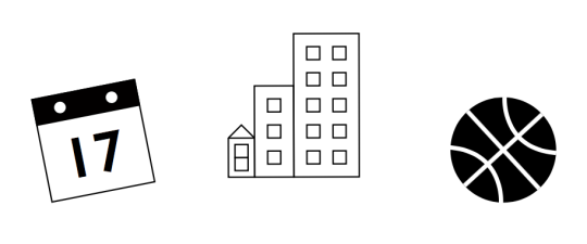 My icons, logos, and presentation template all were all inspired by minimalist design. My icons, rendered in flexible black and white, and are purposeful. The calendar icon is at an angle, representing vitality and dynamism. The buildings in the “city” icon show a chronological trajectory upward as time goes on. Of course, the basketball is at an angle to show its dynamic nature, as well.