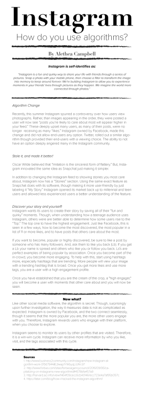 Recently, this summer Instagram spurred a controversy over how users view photographs. Rather, than images appearing in the order, they were posted a user will now see “posts you’re likely to care about most will appear higher in your feed.” These deeply upset many users, as many of their posts, were no longer receiving as many “likes.” Instagram owned by Facebook, made this change and did not allow end-users any option. Twitter, rolled out a similar algorithm though provided their end-users with a viewing choice. The ability to not have an option deeply angered many in the Instagram community.