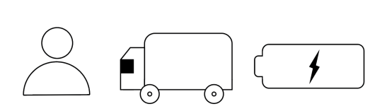For this project, I made some minimalist logos of a truck (delivery icon), a user, and a charging battery. For each, I focused on communicating the idea only through simple lines. The designs were inspired by the Noun Project.