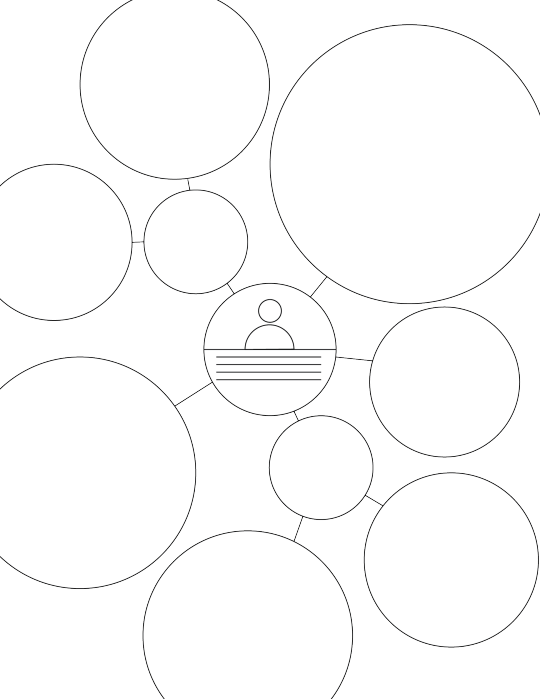Finally, I decided to try my hand at making a portfolio layout. I went for something a bit alternative, not based on a grid layout. Each project is in a bubble circling the designer’s bubble. The bubbles are different sizes for an organic look. I think a design like this would work best on a website, where people could click on each circle for more information. Some circles go over the edge; this is done on purpose.