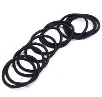 Simple black elastic hair ties, valued for their modest aesthetics, practical hair-holding function, durability, and low cost.