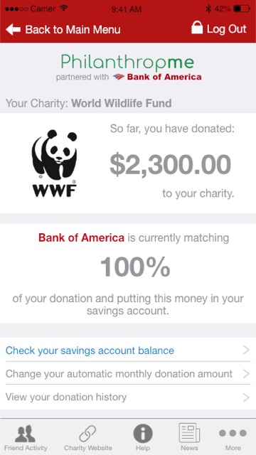As for the bank “matching” your donations, all banks have philanthropic or charitable branches via which they are already donating to or funding nonprofit projects (11). So, when you donate, you’d actually be selecting from charities the bank already gives money to. You’d see/feel as if you were donating to the charity, whereas in reality the bank is just “allocating” some of its donation to the charity in the amount you give, and your money actually goes into your savings account. In other words, we’re simply redesigning the user’s experience, whereas the end effect–your money in your savings account; the bank’s money to the charity–is the same. Though it may not be sustainable at 100% user saturation–banks donate a lot of money, but not a full 1-to-1 ratio of the percentage of the earnings of every customer–if our product ever reached that level of use, it could become a ratio: for every dollar you save, x% is donated to charity.