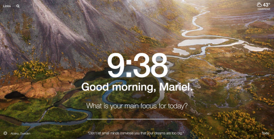 Momentum, a Google Chrome extension that replaces the new tab page with a personal dashboard featuring weather, to-do lists, inspirational quotes, daily goals, and high-quality nature photography.