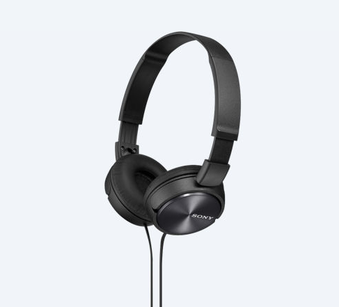 Sony ZX310 on-ear headphones, a budget ($20) pair praised for cord durability, comfortable padding, and sleek design despite plastic construction and limited sound quality.