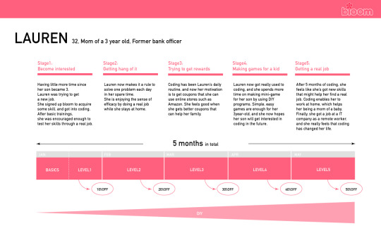 The user incentive for continuing to use bloom is twofold. The first incentive is our rewards program that increases payout with each additional level. The rewards include discounted rates at the companies that may be posting jobs, like Amazon, and would ideally also be companies of interest to our target demographic of mothers. In this way, the user is being compensated for solving problems for companies. The discounted rates were the selected means of incentivization instead of direct money, since we figured for our mother demographic they are not the primary source of income and therefore may not feel the pressing need to make direct income. Providing discounts feels like a more encouraging solution for our users.