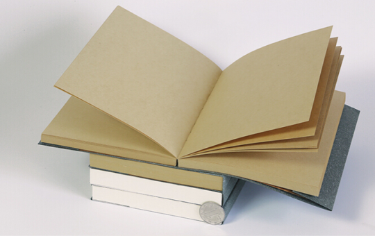 Tan-colored blank notebook pages that provide a warm, neutral alternative to white paper for crafting, creating a less stark and more organic canvas.