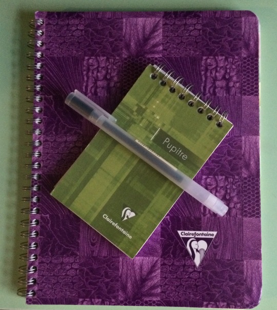 Clairefontaine notebooks with thick, smooth paper, glossy durable covers in distinctive colors, favored for frequent note-taking.