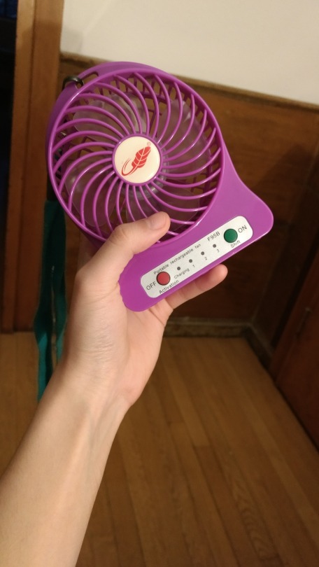 2. Portability: Unlike most plastic, hand-held fans, this fan can be easily carried. It can be attached to any lanyard and over the summer, I would generally sling it over one shoulder or across the body. It can also be hung.