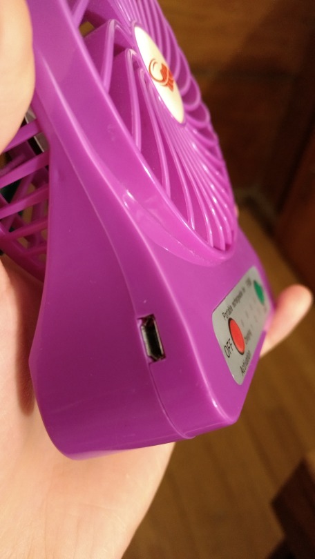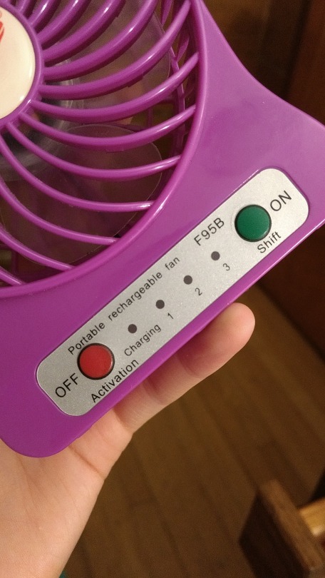 3. Adjustable settings: The fan has three settings (”1″, “2″, “3″) that vary the magnitude of air being blown out. This means I can use it for very hot days or when I just need a slight cool down.