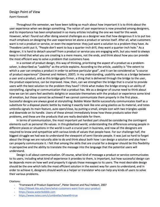 Challenge 8 design point of view essay by Ayami Kawasaki about usability-centered design, problem-solving, and the importance of communication and storytelling in product design.