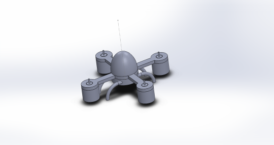 3D CAD render of a quadcopter drone design, modeled for a class assignment.