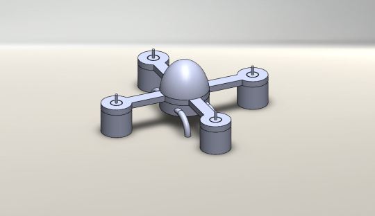 A 3D CAD-rendered quadcopter drone design with four cylindrical motors and a central body, likely a student design assignment submission.