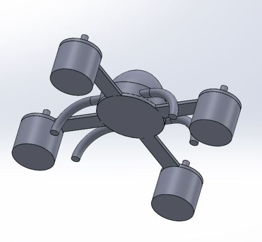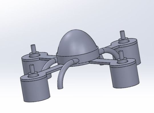 A SolidWorks 3D CAD model of a hexacopter drone with six cylindrical motor housings, rendered as a class exercise.