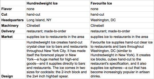 For Challenge 10, our goal is to revolutionize artisan ice delivery. We assessed the merits of five existing artisan ice manufacturers to better understand the market: