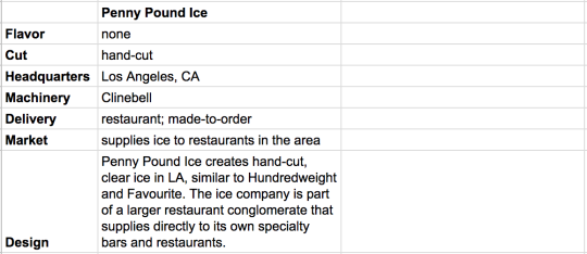 The main drive in the high-end ice market skews heavily towards the high-end bar and restaurant market, with regional companies such as Hundredweight Ice, Favourite Ice, and Penny Pound Ice dominating markets in New York, Washington DC, and Los Angeles respectively. The only two other serious players in the national ice game are Herb and Lou’s, which supplies flavor-infused ice cubes to a consumer retail market, and Glace, which nationally distributes ice spheres to through a subscription model.