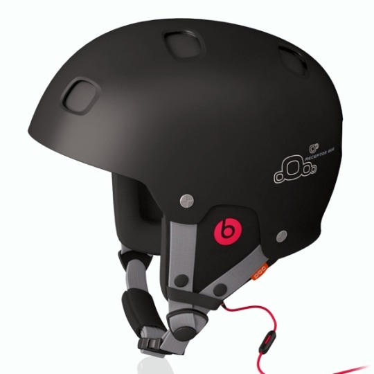 POC ski helmet with built-in Beats mini-speakers integrated into the ear muffs for listening to music while skiing.