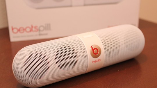 Beats Pill portable Bluetooth speaker with high-quality sound, long battery life, and built-in USB output port for charging other devices.
